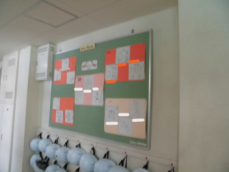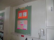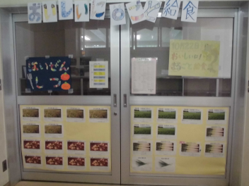 全校児童が見られるように、3年生が作成したPRカードは配膳室前に掲示をしています。