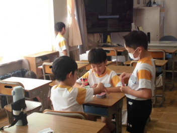 3組は、「むしたちのうんどうかい」「じぶんだけのいろ」