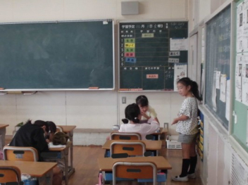 •  前回(10/2 曳馬小ブログ 「楽しい昼休み ~外遊び、大好き!~」 参照)は、昼休みの運動場で過ごす子供たちを紹介しました。昼休みは、校舎内で過ごしている子たちもいますから、今回はそちらに目を向けてみます。