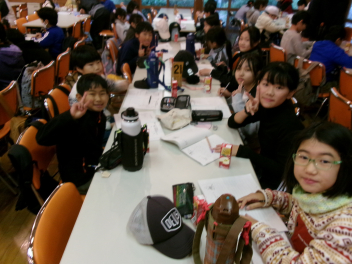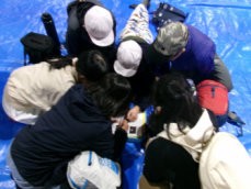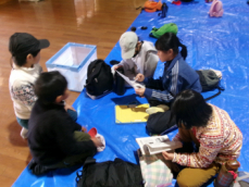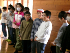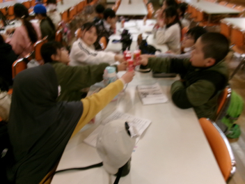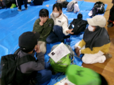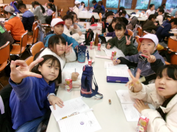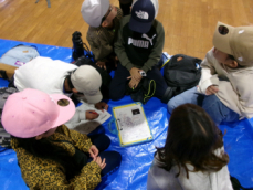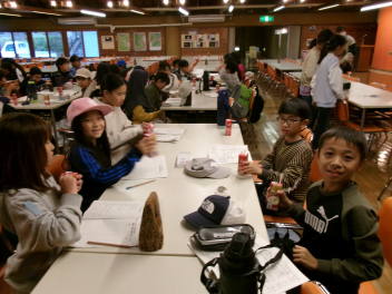 お腹がすいていたのか、予定時刻よりも早く食べ終わりました。外へ出る前に、グループごとに「作戦タイム」の時間。