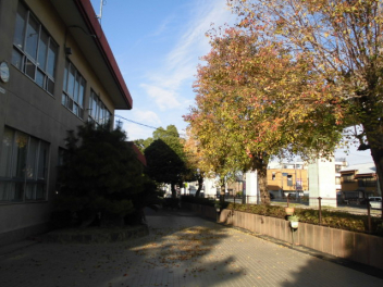 曳馬小の玄関近くや校庭にある木々も、葉が色づいたり、落ちたりしているものが多く見られるようになりました。