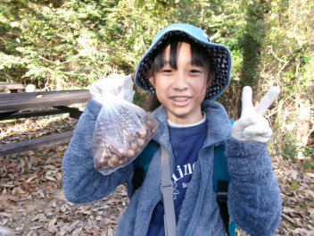 落ち葉を踏む感触や、初めて触る木の感触。大量のドングリ。
