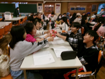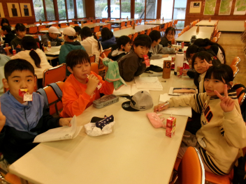 いつもの教室とは違う場所で、給食ではなくお弁当を食べるというだけで、特別感はいっぱいです。みんな、友達と話しながら、楽しそうに食事をしていました。