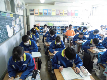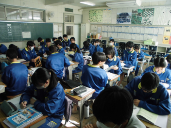 朝の黙想が近づき、ピリッとした空気感のクラスもありました。