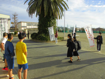 保護者の方を中心に、子どもたちの登校を見守ってくださっていましたlaugh