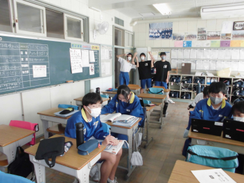 昼休みには、階段、廊下、各教室といろいろな場所で曳中生が”はっちゃっけて”いましたsmiley