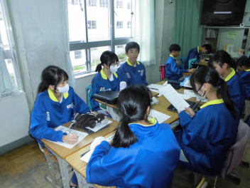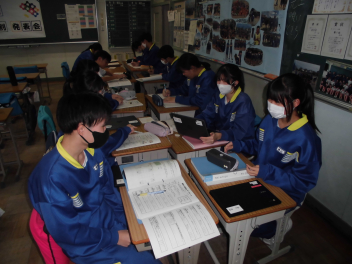 2年生は、3時間の予定で浜松市学力調査を実施中。