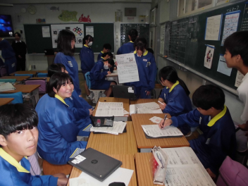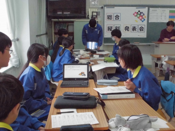 クラスや学年では毎年この時期に1年間の総合的な学習の時間の成果を発表していましたが、なんと二大行事で協力し、盛り上がった「縦割り団」で発表チームが編成され、先輩後輩の発表を聞く機会となりました