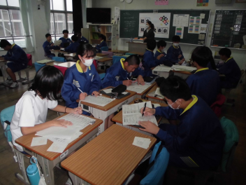 本日、6時間目に3年生が「県学力調査」を返却されていました。