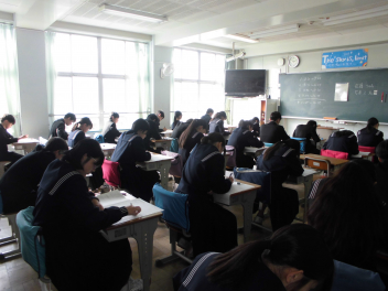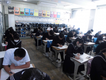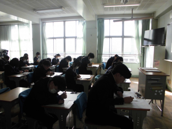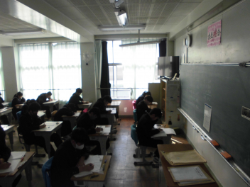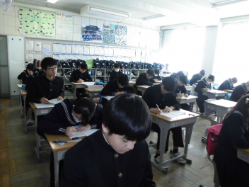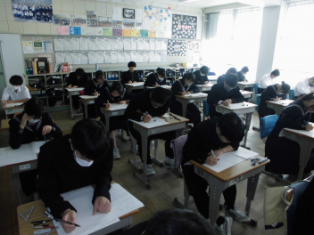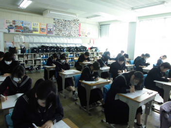 今日は、3年生は、第2回県学力調査試験を行っています。
