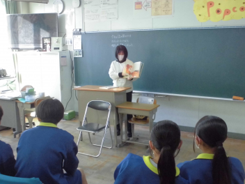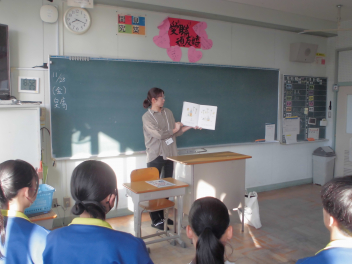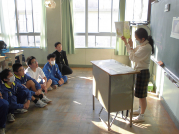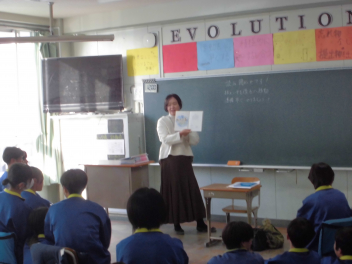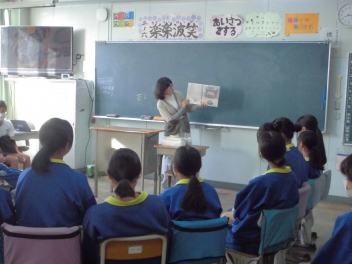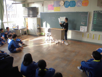 • 曳馬中では学期に1度、学年ごとにグリムの会による「読み聞かせ」が行われています
