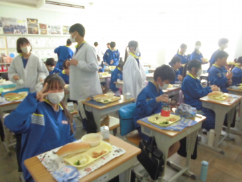 栄養教諭の平櫛先生によると、米粉と片栗粉を混ぜて鶏肉にまぶしてあるので、さくさくと軽い食感でした