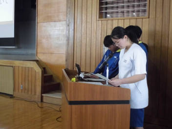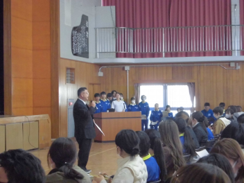 修学旅行実行委員長の前島愛純さんの力強い挨拶から始まり、2泊3日の行程が説明されました