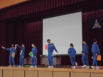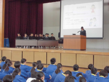 4時間目は生徒総会が開かれ、生徒会執行部や各専門委員長から今後の活動計画が発表されました