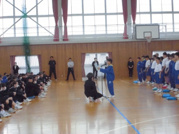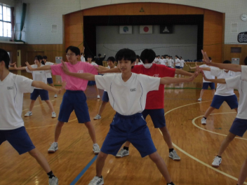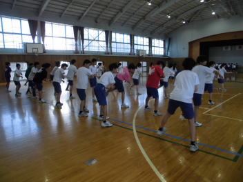 3年生の保体の授業。曳中ソーランが始まりました。