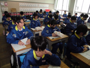 5時間目は、「任命式」で学級委員・学級書記・生徒会役員の任命が行われた後・・・