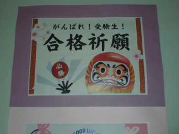 3年生の皆さん、いよいよ本番が近づいて来ましたね。体調をしっかり整えて、万全の態勢で臨んで下さい。今までやってきた自分を信じて、最後まで諦めないでくださいね。
