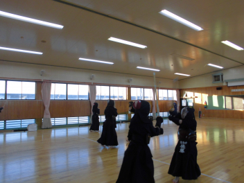 男女ソフトテニス部は、寒さに負けず体全体でストロークしている様子が見られました