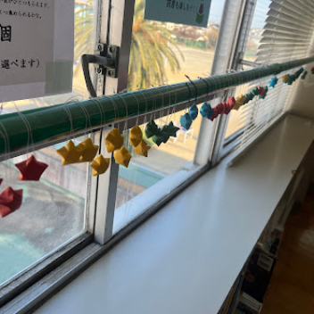 図書室では、読書週間のイベントとして、本を借りたら星がもらえるイベントを行っています