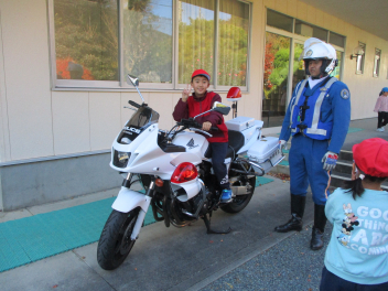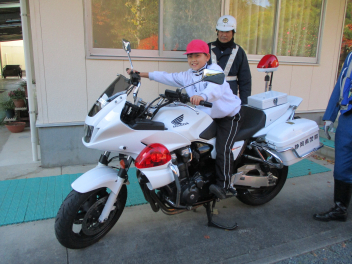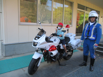 白バイに乗せてもらったり、パトカーの車内を見せてもらったりしました