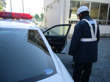 本日から始まる「年末の交通安全県民運動」の広報も兼ねながら、白バイ1台とパトカー2台が平山小に来てくれました