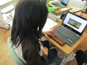 4年生が算数でそろばんに取り組んでいました。動画を見ながら指の練習をぱちぱち。こちらも「できた!」の声winkうれしいですね。
