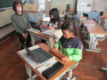 5・6年生は算数の学習。授業の終わりには、今日習ったことやこれまでに学習したことをしっかりと身に付けるために、練習問題に挑戦しています。みんなあきらめずに真剣に課題に取り組んでいて感心します。分からないところは先生がそばについて丁寧に教えてくれるので安心ですねlaugh