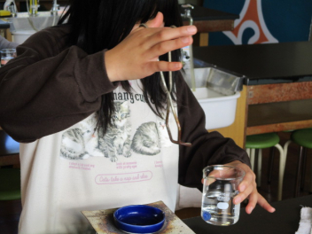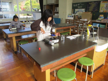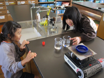 理科では、ガスバーナーでビー玉を熱して、それを水で急激に冷やし、ヒビを入れてキラキラのビー玉を作っていましたfrown「できた~」「すごいきれい!」子供たちの目もきらきらしていましたsad
