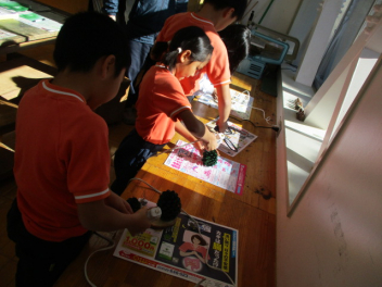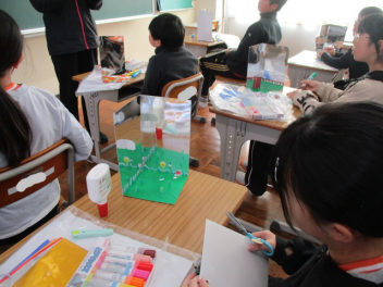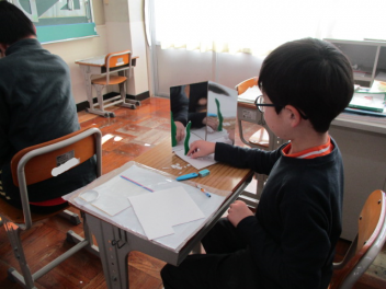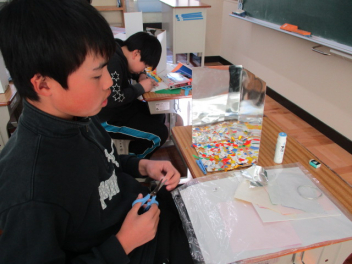 5年生は図工で作品作り。ミラー効果を生かしながら、自分で作りたいものを考えながら、細かいパーツを作って貼っていました。じっくりと集中して取り組む姿が見られましたblush