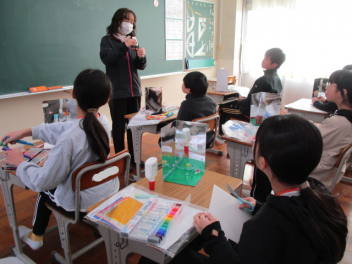 また、理科の学習で育てたヒマワリについても、「種がとれたので春になったら植えてね」と、2種類のヒマワリの種をプレゼントしました