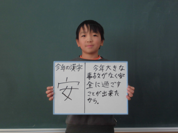 4年生は書き初め2年目ですので、よくお手本を見ながら、漢字も平仮名も大きくしっかりとした字を書くことができていました。