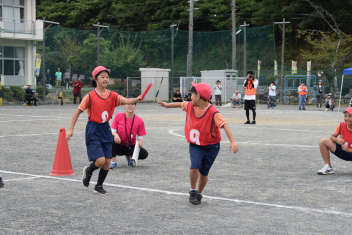 運動会の最後は、運動会の花「リレーカーニバル」です 赤組白組全員がバトンをつなぎます 2年生も上手にバトンパスができていました。みんな全力を出し切って走りぬきましたwink 結果は…赤組の勝ち 頑張り抜いた子供たちの顔は満足感にあふれていましたlaugh みんな、とても素敵でした