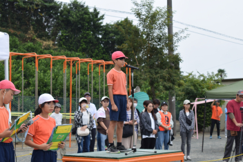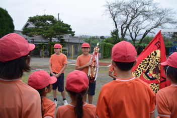 今年の運動会のスローガンを確認したり、団長が選手宣誓をしたりしました。