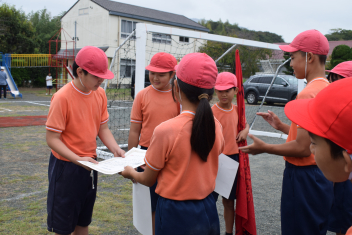 開閉会式の練習の後は、大玉転がしの練習です。前回は運動場でできなかったので、今日は本番と同じように運動場で行いましたyes 低学年の部は赤組、高学年の部は白組が勝ちました。ペアの友達と協力し、チームワーク良く大玉を転がすことができていました。みんな笑顔いっぱいでしたsad 引き分けの場合はタイムの速いほうが勝ちになります。さて、当日はどちらが勝利するでしょうか?