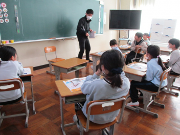 6年生は総合の授業「職業調べ」の一環で、警察官に仕事のやりがい等のインタビューをしていました