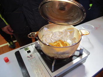 さらに、女性部のみなさんからは、できたてあつあつ野菜たっぷりの豚汁もいただきました。