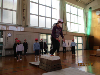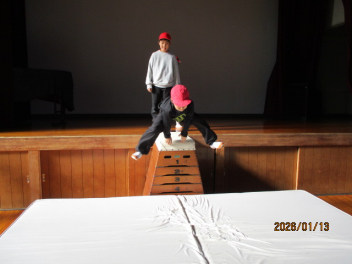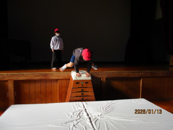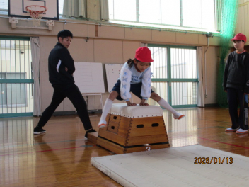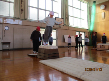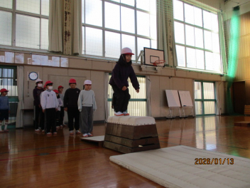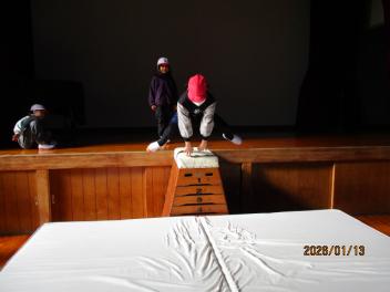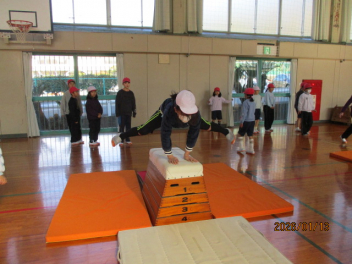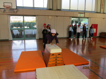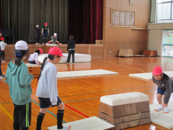 体育館では、2・3・4年生が体育で「跳び箱遊び・跳び箱運動」を行っていました。