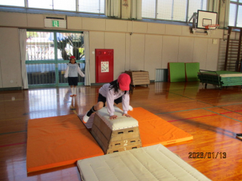 手を前につき、腰を高く上げ美しいフォームで跳ぶことができました