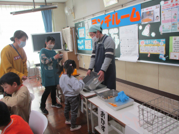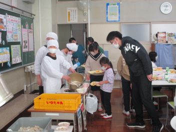 給食の時間には、来年入学予定の幼稚園年長さんがランチルームに来て、一緒に給食を食べました