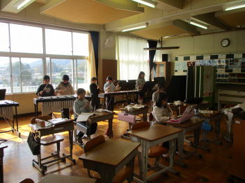 5・6年生は国語の授業。どちらも教材文を読んで、そこから自分はどう考えるか、自分の意見を書く学習に取り組んでいました。「考えをもつ」ことはなかなか力のいることですが、それを文に表すことも子供たちにとってはハードルが高いものです。みんなう~んと頭を悩ましていましたsmiley