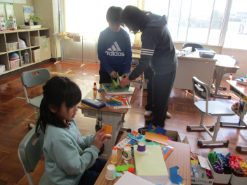 新1年生になる園児さんと来年度6年生になる現5年生が一緒に活動しました
