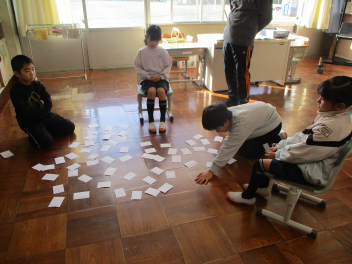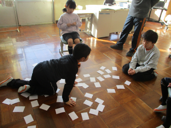 2年生は昨日に引き続き、国語の授業で漢字カルタをみんなでやっていました。前回よりも札が増えて、少し難易度が上がっていましたが、みんな真剣に札合わせに取り組んでいましたfrown