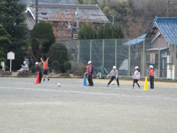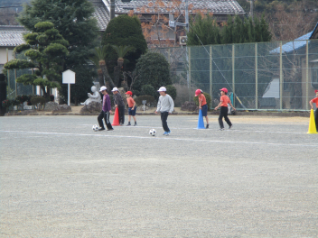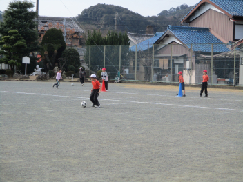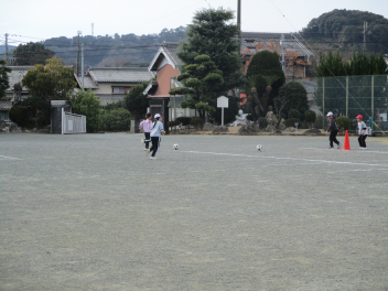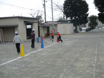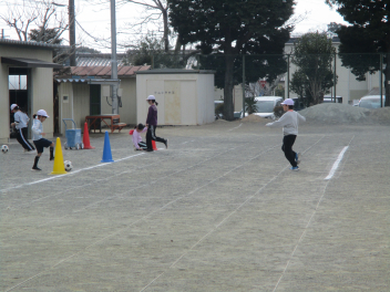 その後、ボール運動です。運動場を広く使って、ドリブルをしながら相手のところまでボールを持っていき、相手に渡してまたドリブルをする、という運動をしていました みんなとても楽しそうに一生懸命取り組んでいましたsad