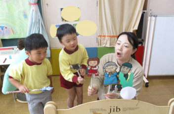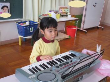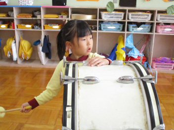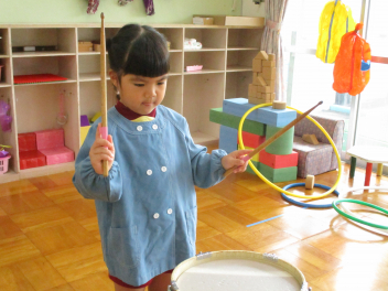 うさぎ・きりん組さんからは、いろいろな楽器の音が、リズムにのって聞こえてくるようになりました