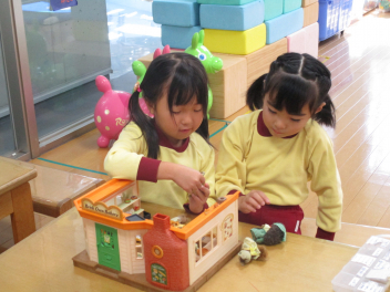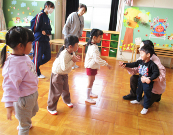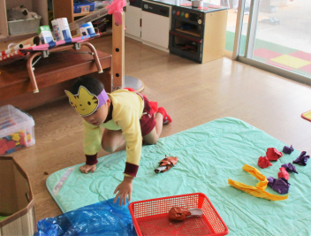 遊戯室では、表現遊びをみんなで楽しんでいますfrown