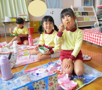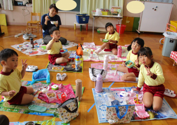 午後になっても、お弁当を食べてパワーを取り戻したこども達の元気な声が、幼稚園中に響いていましたよ