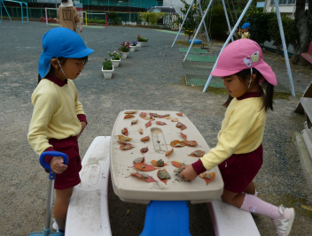 今日は、秋の自然をいっぱい探しながら遊びました