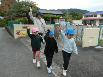 小学校に消防車と救急車が止まっているのを発見し、自分達から「こんにちはsad」と元気に挨拶をした姿に、成長を感じました
