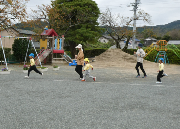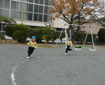 「私も、走りたい!!」と、園に戻ってマラソンがはじまりましたwink