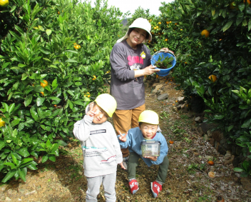 たわわに実ったみかん畑を通りながら、どんぐりや木の実をたくさん見つけて帰る途中・・・